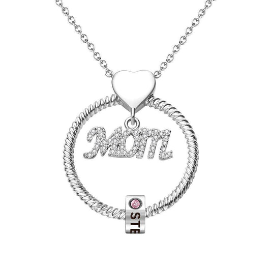 Custom Engraved Necklace With One Birthstone Gifts For Mom - Silver